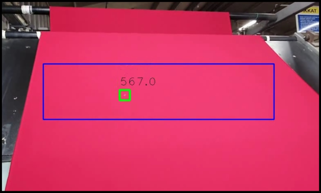Sistemde, operatör tarafından ekranda işaretlenen bölgeyi analiz eden yazılım, kumaş üzerindeki hatalı üretim alanlarını algılayarak, bu bölgelerin koordinatlarını işaretler ve kaydederek operatöre bildirimde bulunur.